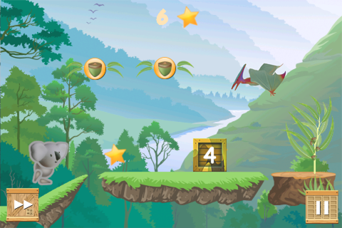 Follow the koala across deep-jungle grassy platforms to reach a twig of fresh eucalyptus leaves. Avoid ghosts of extinct animals that seek to drag the koala into their world. Tap your finger to remove dinosaurs and man-made obstacles to get to the other side.