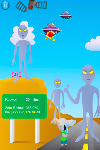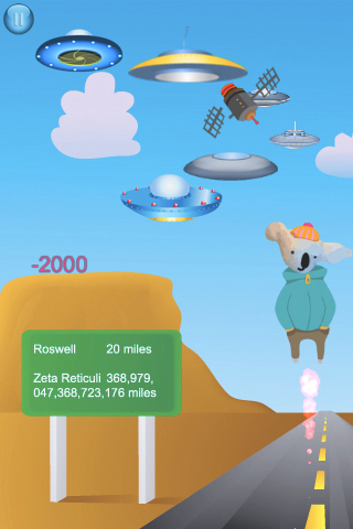 Help KJ, the koala, sort through fact and fiction, both on Earth and in the outer stratospheres... Avoid true dangers in the form of space junk, falling satellites, and burning meteorites, rather than imagined UFO space ships and aliens! Pop those in translucent pink bubbles and send them back where they came from. Play the game to the end and receive several Koala Jo prizes!